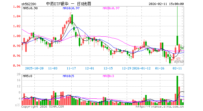 2月11日,中药ETF银华(562390)跌0.20%,成交额149.48万元。当日份额减少100.00万份,最新份额为8842.90万份,近20个交易日份额增加700.00万份。最新资产净值计算值为8613.87万元。