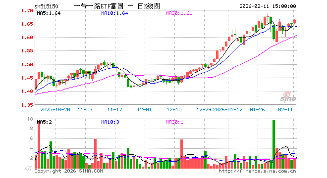 2月11日,一带一路ETF富国(515150)涨0.67%,成交额332.73万元。当日份额增加100.00万份,最新份额为5.46亿份,近20个交易日份额增加300.00万份。最新资产净值计算值为9.06亿元。