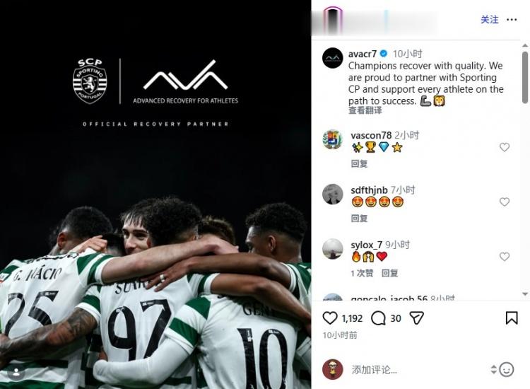 C罗旗下品牌在社交媒体发文写道:“冠军球员以高质量方式进行恢复,我们为与葡萄牙体育俱乐部的合作、为助力所有运动员走向成功之路感到自豪。”