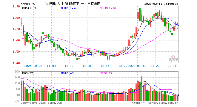 2月11日,科创板人工智能ETF(588930)跌0.97%,成交额5393.69万元。当日份额减少1400.00万份,最新份额为9.39亿份,近20个交易日份额减少2600.00万份。最新资产净值计算值为16.33亿元。