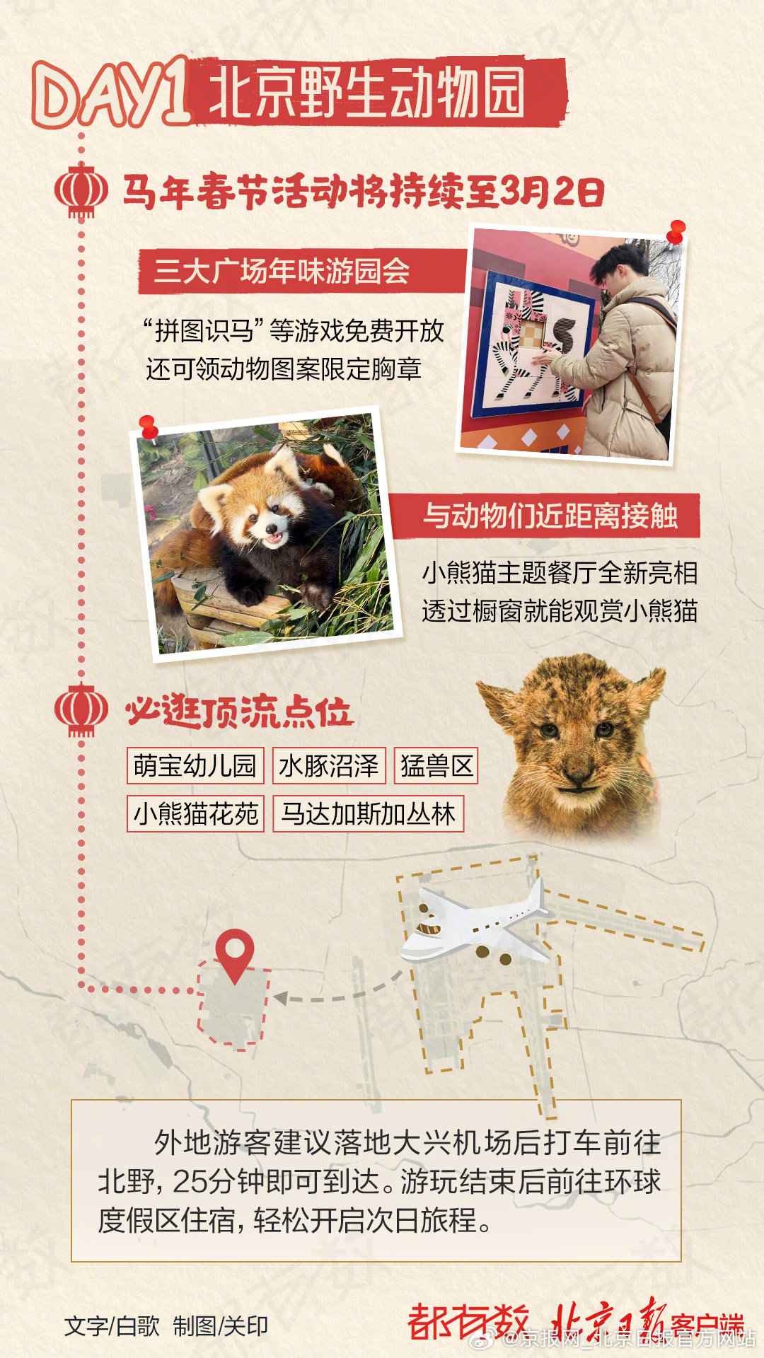 【收藏!#带孩子逛北京推荐这么玩#】#北京亲子游超实用攻略# 带小朋友逛北京,如何满足孩子对玩乐的多样化需求?请看这份攻略——落地直奔北京野生动物园去看小熊猫,次日转场环球度假区与小黄人相会,最后再到清北校园走一圈,那叫一个充实!还有春节限定活动,具体信息请戳图↓↓↓(记者 白歌 美编 关印)