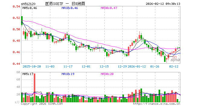 2月12日,医药50ETF(512120)开盘涨0.21%,报0.468元。医药50ETF(512120)重仓股方面,药明康德开盘涨0.60%,恒瑞医药跌0.51%,片仔癀涨0.00%,云南白药跌0.17%,新和成涨1.25%,华东医药涨0.05%,复星医药跌0.04%,上海莱士涨0.00%,科伦药业跌0.16%,百济神州跌0.08%。