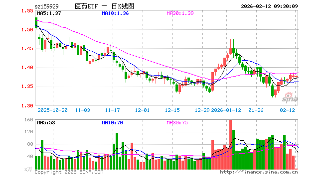 2月12日,医药ETF(159929)开盘跌0.29%,报1.374元。医药ETF(159929)重仓股方面,药明康德开盘涨0.60%,恒瑞医药跌0.51%,迈瑞医疗涨0.00%,联影医疗涨0.01%,爱尔眼科跌0.19%,片仔癀涨0.00%,云南白药跌0.17%,新和成涨1.25%,华东医药涨0.05%,上海莱士涨0.00%。