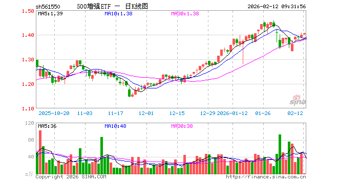 500增强ETF(561550)业绩比较基准为中证500指数收益率,管理人为华泰柏瑞基金管理有限公司,基金经理为柳军、笪篁,成立(2021-12-02)以来回报为40.21%,近一个月回报为3.43%。