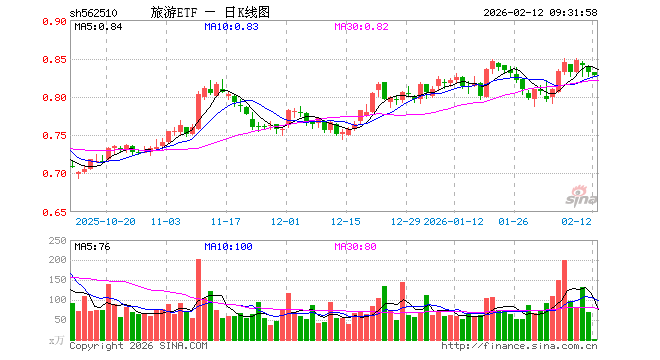 2月12日,旅游ETF(562510)开盘跌0.12%,报0.831元。旅游ETF(562510)重仓股方面,中国中免开盘跌0.23%,中国东航涨0.65%,南方航空跌0.13%,上海机场跌0.16%,中国国航涨0.34%,宋城演艺跌0.44%,海南机场跌0.44%,锦江酒店涨0.00%,春秋航空跌0.21%,首旅酒店跌0.12%。