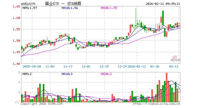 2月12日,国企ETF(510270)开盘跌0.25%,报1.574元。国企ETF(510270)重仓股方面,贵州茅台开盘跌0.27%,紫金矿业涨0.23%,长江电力涨0.00%,招商银行涨0.00%,中信证券跌0.04%,国泰海通跌0.20%,兴业银行涨0.00%,工商银行涨0.00%,中国船舶跌0.40%,万华化学跌0.06%。