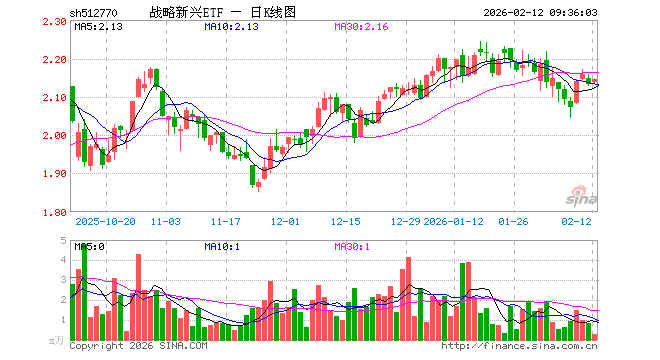 2月12日,战略新兴ETF(512770)开盘涨0.33%,报2.138元。战略新兴ETF(512770)重仓股方面,中际旭创开盘涨0.58%,新易盛涨0.37%,东方财富跌0.09%,寒武纪涨0.10%,立讯精密涨0.22%,阳光电源跌0.07%,胜宏科技跌0.15%,海光信息涨1.96%,恒瑞医药跌0.51%,药明康德涨0.60%。