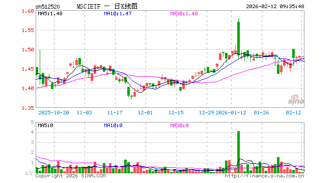 2月12日,MSCIETF(512520)开盘跌0.07%,报1.481元。MSCIETF(512520)重仓股方面,贵州茅台开盘跌0.27%,宁德时代涨0.54%,招商银行涨0.00%,工业富联涨0.27%,中国平安涨0.15%,紫金矿业涨0.23%,中际旭创涨0.58%,寒武纪涨0.10%,长江电力涨0.00%,农业银行涨0.00%。