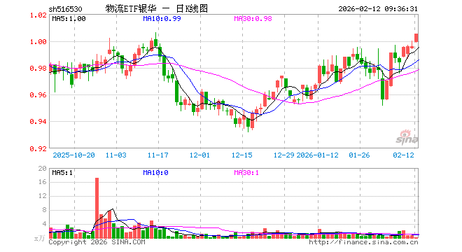 2月12日,物流ETF银华(516530)开盘涨0.30%,报0.999元。物流ETF银华(516530)重仓股方面,中远海控开盘涨0.07%,顺丰控股跌0.03%,京沪高铁涨0.00%,招商轮船涨3.49%,大秦铁路涨0.20%,圆通速递跌0.11%,蔚蓝锂芯跌0.70%,中远海能涨2.64%,物产中大跌1.22%,建发股份涨0.21%。