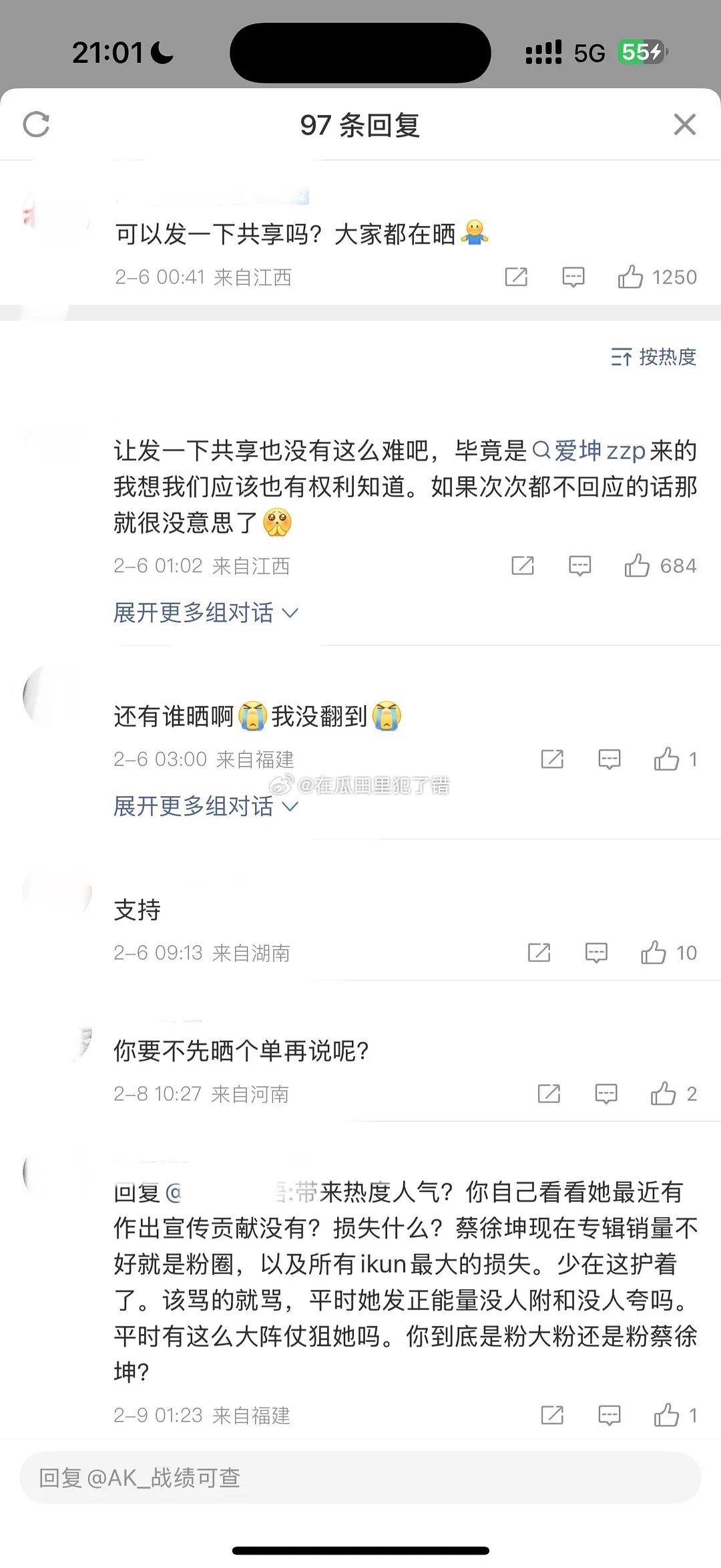 蔡徐坤粉圈最大的大粉好像被🌞走了。。。原因是新发的专辑只买了近5k😰