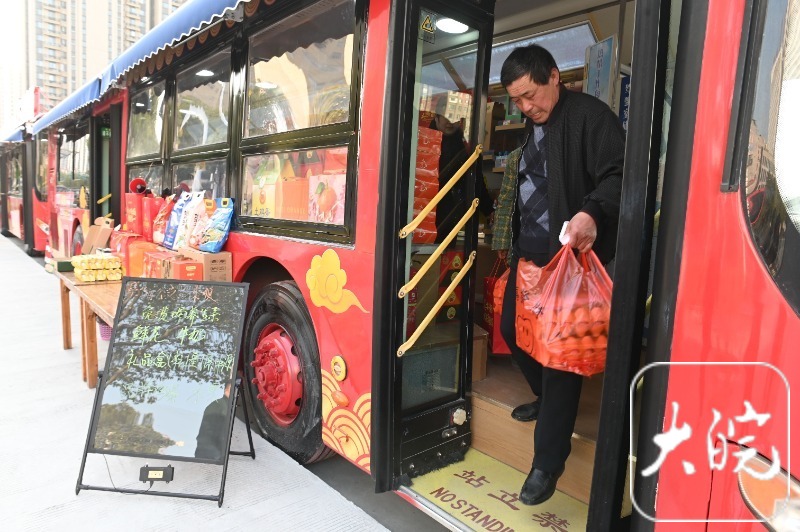 在阜阳,这并非公交系统的首次“跨界”。去年9月,707路城乡公交就试水了“公交助农线”,在车厢设置农产品代销区,乘客沿途58个站点可上车随买随走。如今,这一模式从动态公交延伸到静态车厢,从“路上卖”升级为“定点卖”。