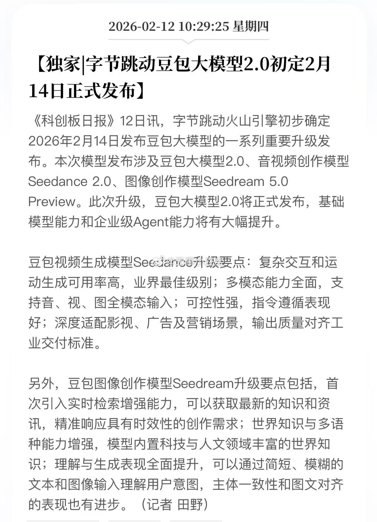 字节跳动豆包大模型2.0初定2月14日正式发布,这个春节国产大模型很热闹