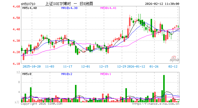 2月12日,截止午间收盘,上证50ETF博时(510710)跌0.32%,报4.415元,成交额63.62万元。上证50ETF博时(510710)重仓股方面,贵州茅台截止午盘跌1.42%,中国平安跌1.04%,紫金矿业涨1.70%,招商银行跌1.60%,兴业银行跌1.54%,长江电力跌0.65%,寒武纪跌0.45%,中信证券跌0.68%,恒瑞医药跌0.37%,工商银行跌1.51%。