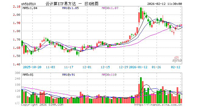 2月12日,截止午间收盘,云计算ETF易方达(516510)涨1.19%,报1.877元,成交额7693.95万元。云计算ETF易方达(516510)重仓股方面,科大讯飞截止午盘涨1.29%,金山办公跌0.27%,中际旭创跌0.17%,新易盛跌0.31%,浪潮信息涨3.14%,中科曙光涨1.50%,紫光股份涨0.99%,恒生电子涨0.07%,拓维信息涨1.96%。