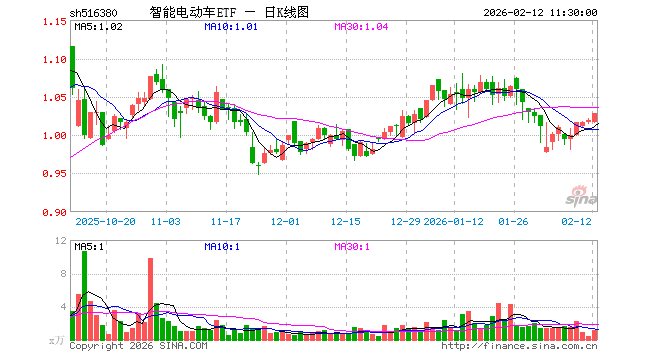 2月12日,截止午间收盘,智能电动车ETF(516380)涨0.88%,报1.028元,成交额112.56万元。智能电动车ETF(516380)重仓股方面,宁德时代截止午盘涨2.57%,比亚迪跌0.91%,立讯精密跌0.71%,三花智控涨1.15%,汇川技术涨0.21%,赛力斯跌0.86%,豪威集团跌0.37%,亿纬锂能涨1.60%,拓普集团涨1.48%,华友钴业涨3.63%。
