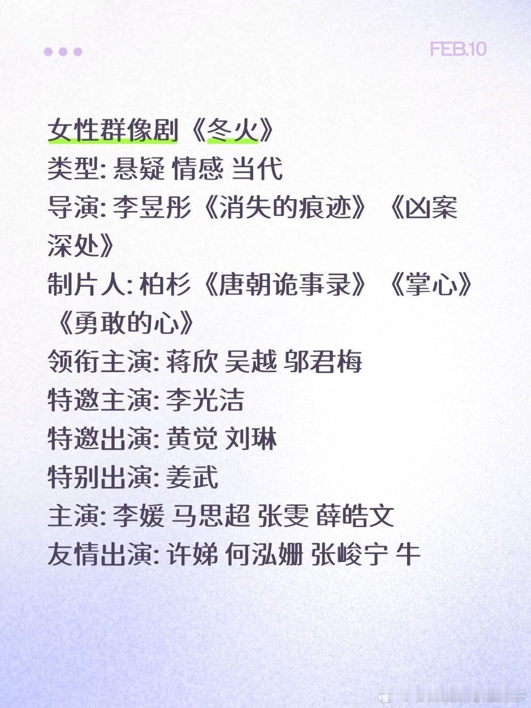 这个饼好,👉 当代女性群像剧《冬火》 类型:悬疑、情感 主演:蒋欣、吴越、邬君