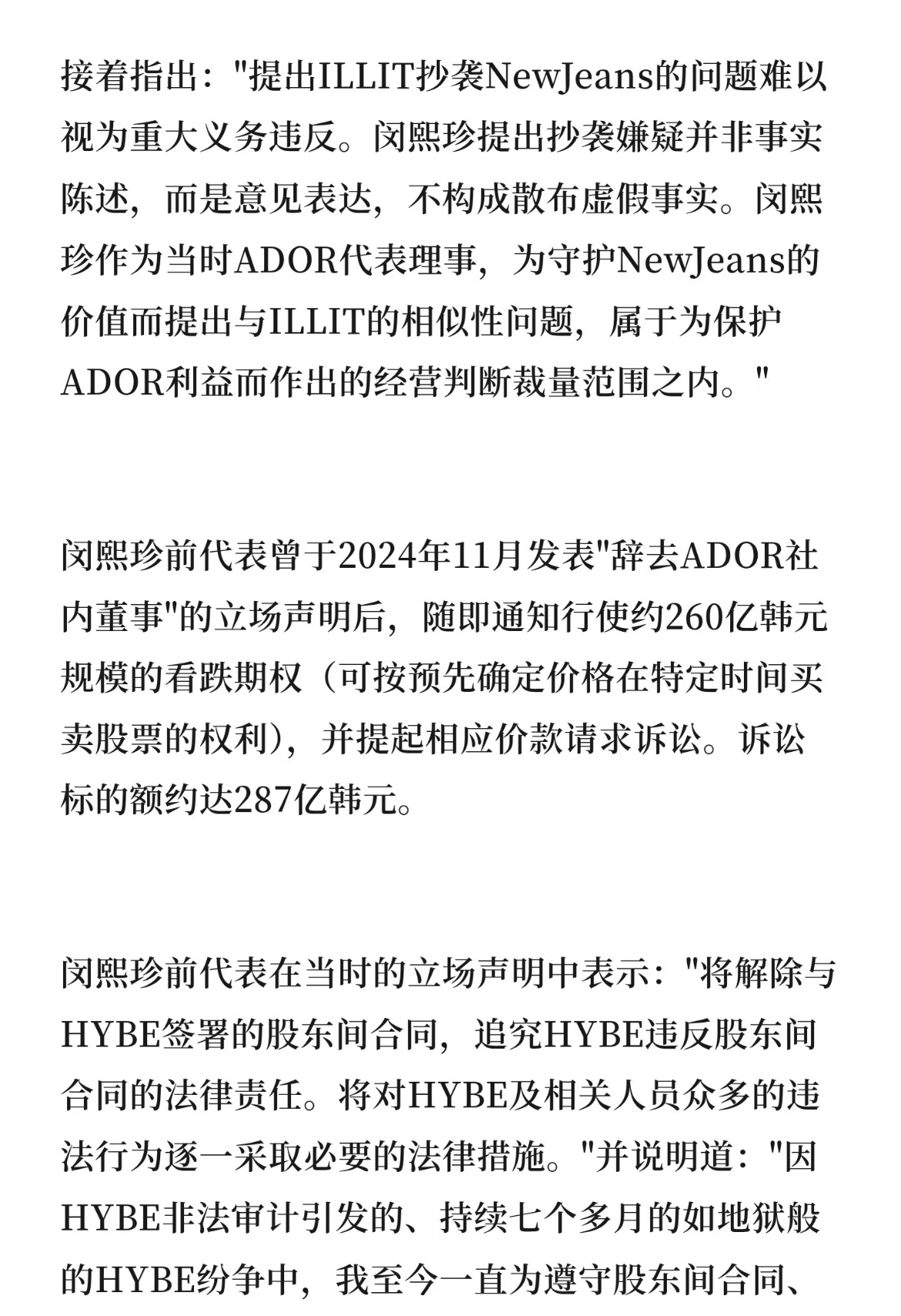 闵熙珍胜诉 法官:被告闵熙珍提出illit抄袭争议问题是正当的