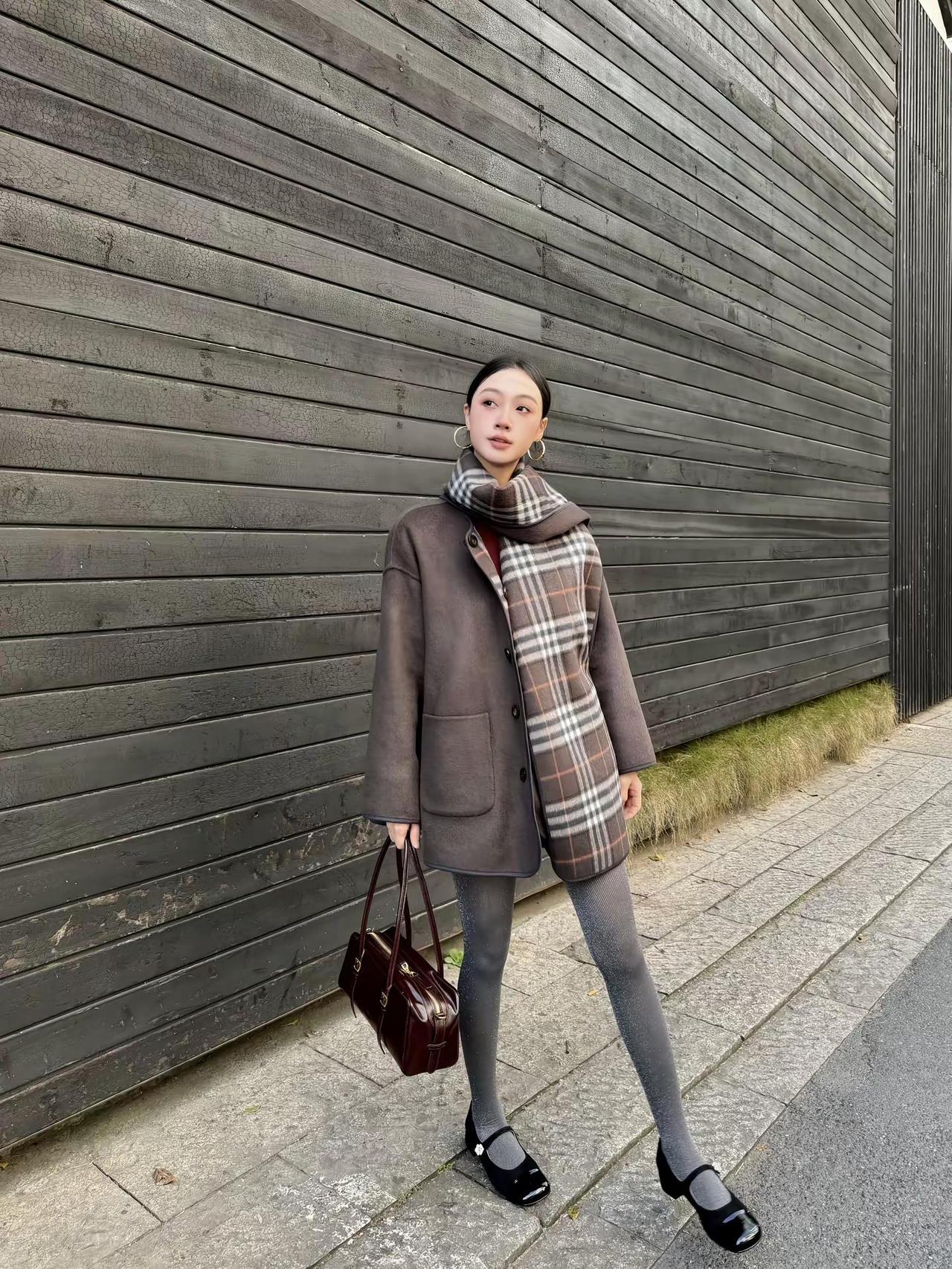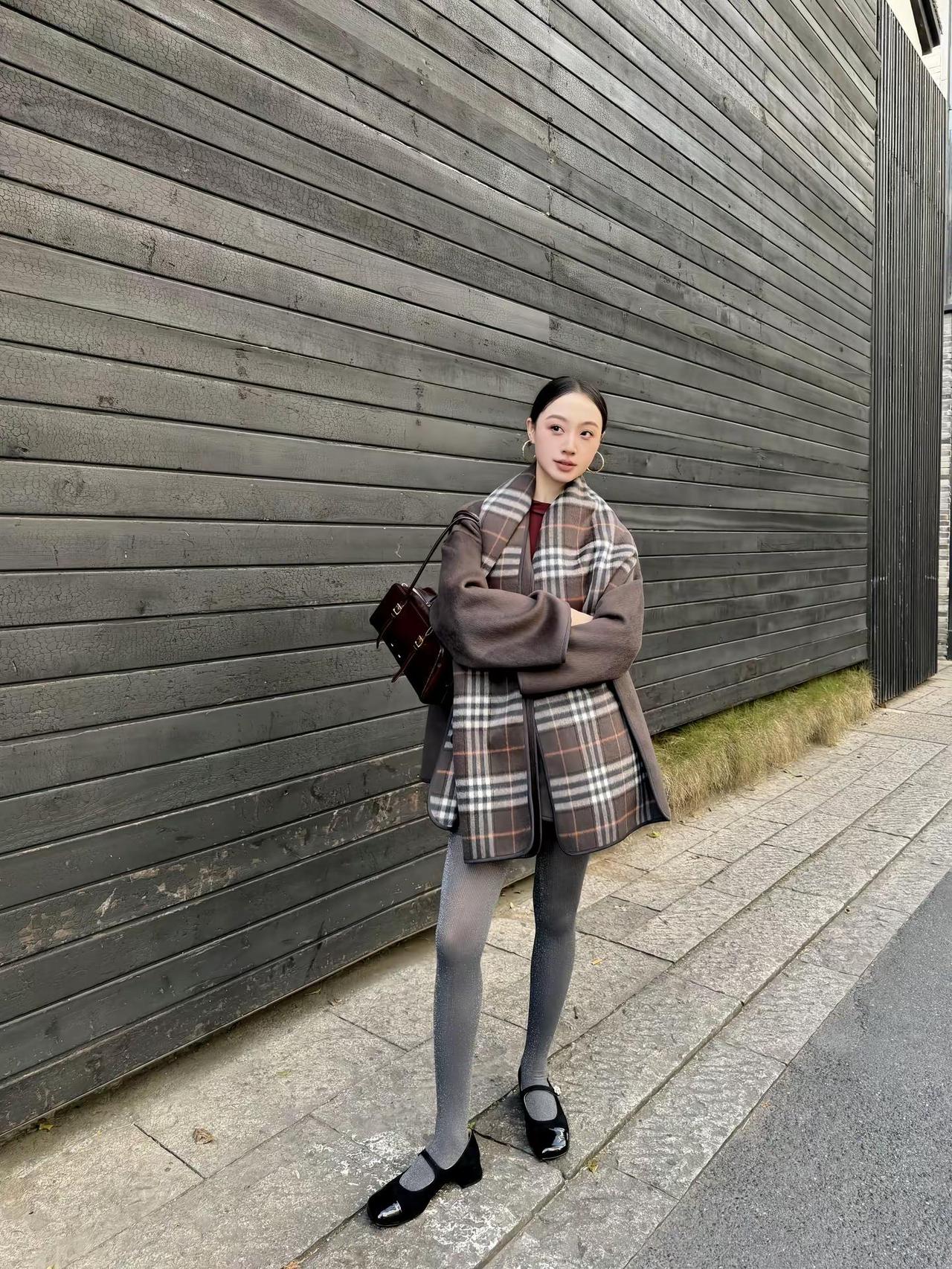 复古格纹大衣好时髦~大衣搭配 ootd每日穿搭 秋冬穿搭