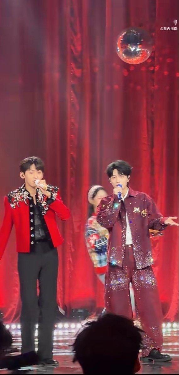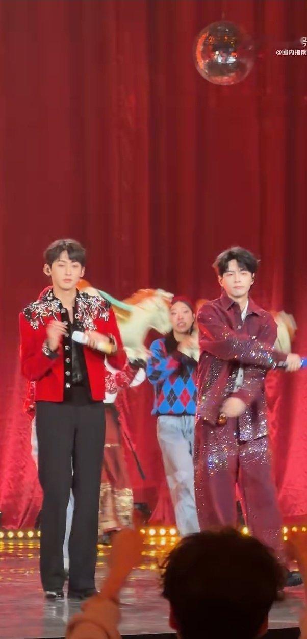 唐九洲就这么等着和蒲熠星击掌 谁能拒绝这么可爱的互动!唐九洲伸着手等蒲熠星,眼神里全是认真,两人舞台配合完美,红色穿搭年味十足。