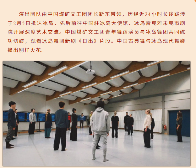 【靳东带团北欧文化交流行】靳东带团冰岛演出冰岛时间2026年2月7日晚,中国煤矿文工团“2026欢乐春节”北欧演出交流团在冰岛大学剧场献上《舞韵东方》——中国古典舞专场演出,为当地民众及华侨华人送上新春祝福。演出团队由中国煤矿文工团团长带领,先后前往中国驻冰岛大使馆、冰岛雷克雅未克市剧院开展深度艺术交流。交流期间,靳东在接受媒体采访时表示,此次北欧之行是推动中华文化走向世界的实践,希望以文艺为桥促进文明互鉴。冰岛专场后,演出团将赴瑞典、挪威演出,持续拓宽中国-北欧文化交流的广度与深度。(中国煤矿文工团)