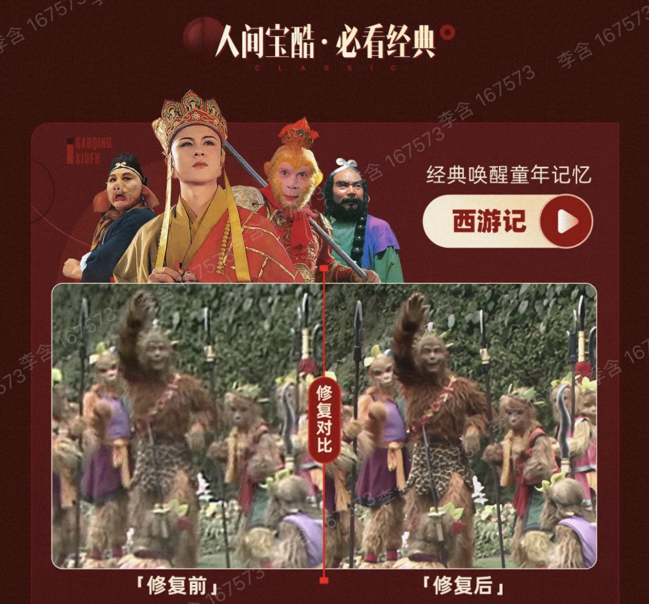 上证报中国证券网讯(记者杨翔菲)2月12日,优酷上线“人间宝酷AI高清修复经典”专题页面,运用自研生成式AI大模型,成功完成对《红楼梦》《三国演义》《水浒传》《西游记》央视版四大名著等十余部国民级经典影视剧的高清修复,于优酷平台内供用户观看。