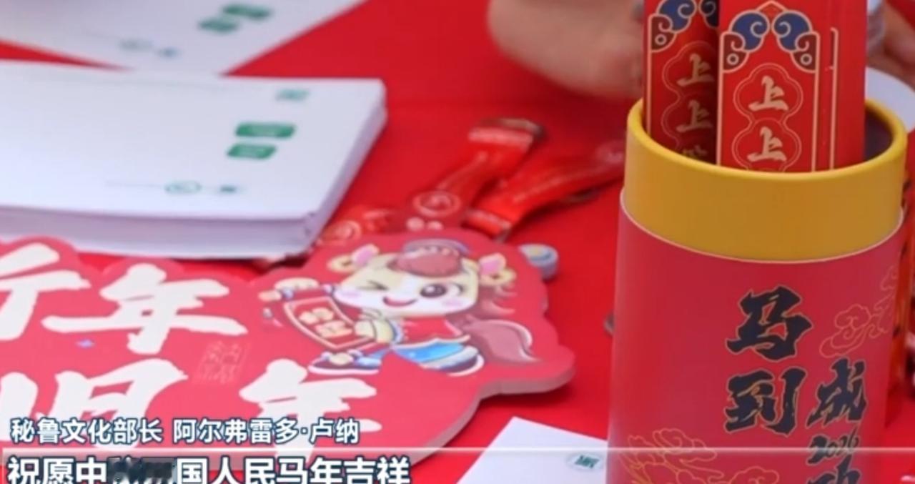 年味跨越山海,在异国他乡绽放别样光彩。活动现场,色彩斑斓的民族舞蹈热闹开演,台下嘉宾与观众掌声雷动,共赴这场跨文化的新春之约。 集市里人头攒动,各式新春好物备受青睐,红色的年味铺满街巷。秘鲁文化部长阿尔弗雷多·卢纳送上真挚祝福,愿中秘两国人民马年吉祥。红彤彤的挂饰、印着“马到成功”的文创、精致的生肖玩偶,每一件物件都承载着美好期许,让中华文化的魅力在交流中传递,也见证着中秘两国深厚的友谊。