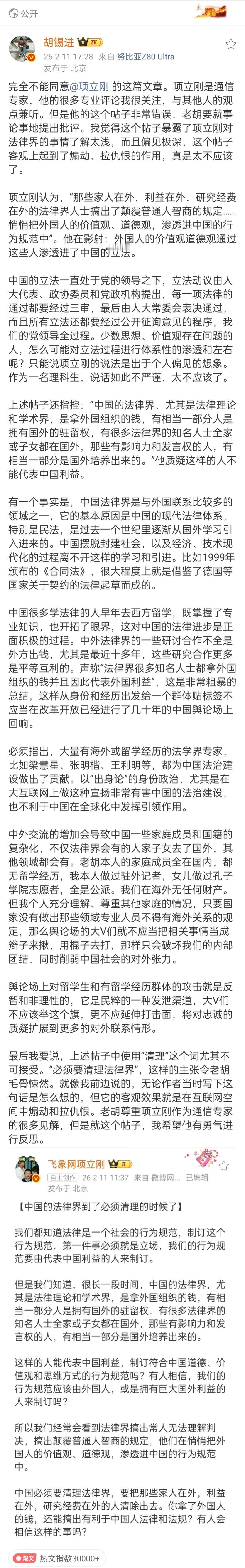 胡锡进和项立刚吵起来了