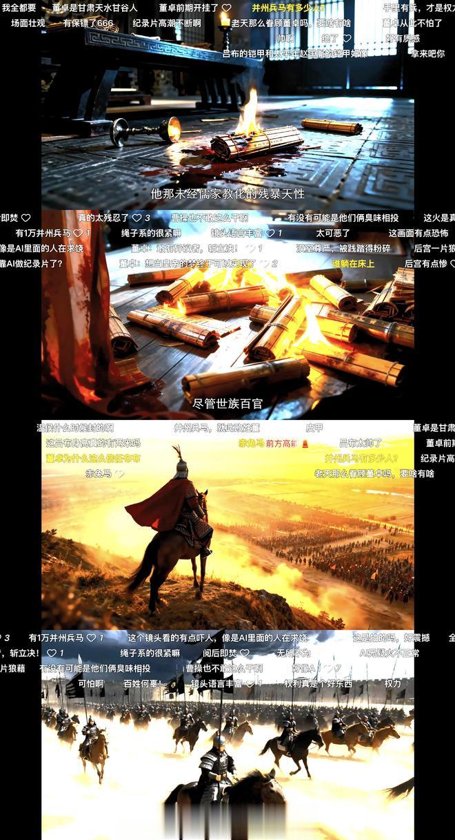 何况国产历史纪录片,一年产出数量本身就偏少,在AIGC全面渗透后,至少数量上可以做到「想看多少,就有多少」的规模体量了,不管是在各大视频平台,还是在历史自媒体和新媒体号。