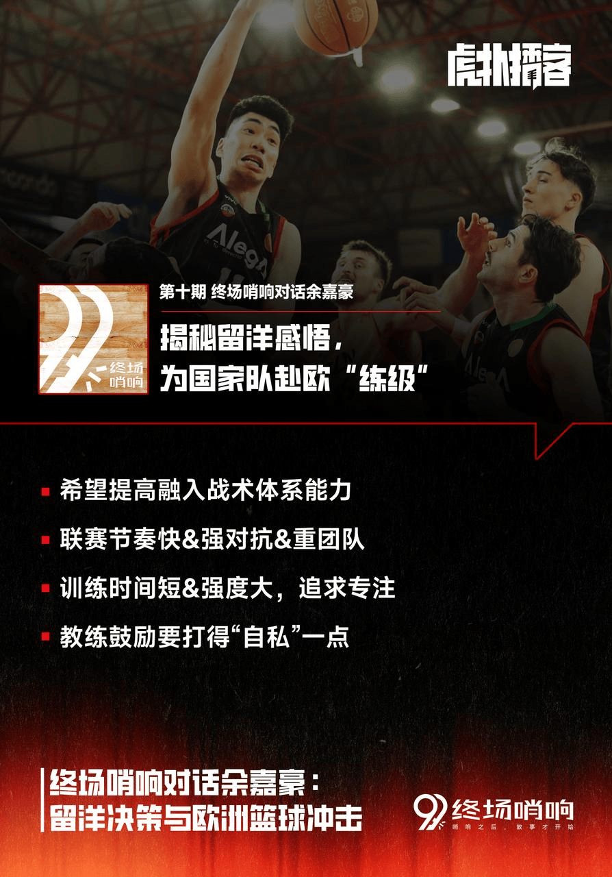 虎扑02月12日讯近期中国男篮官宣了第二窗口期的集训名单,其中在西班牙留洋历练的余嘉豪就在其中。对于余嘉豪的留洋生涯以及他的选择一直备受网友们的关注,大家对于这名勇于突破舒适圈的内线支柱都充满期待,本期节目我们邀请到了余嘉豪以及他的好朋友JONAS,一起来聊一聊留洋西班牙的那些事。