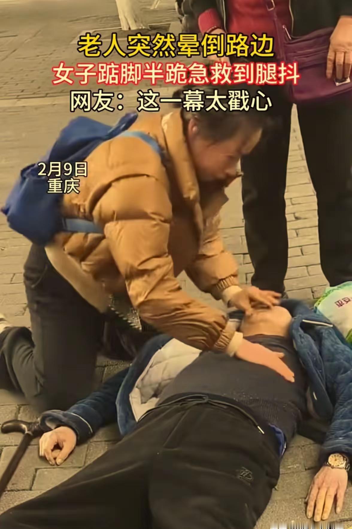 重庆街头那一跪:她用本能救了陌生人 那天下午五点的重庆街头,车流人潮像往常一样匆忙🌆。忽然,一位老人倒下了——瞬间的寂静后,慌乱像水波般荡开。有人愣住,有人摸出手机……而她,几乎没有任何犹豫,“扑通”一声半跪下去。 不是蹲,是跪。膝盖抵住粗糙的地面,双手已交叠压上老人的胸口❤️。一下,又一下,按得又深又准。周围的世界仿佛被静了音,只有她急促的呼吸,和那双渐渐开始发抖的腿💦。 懂行的人知道,心肺复苏是场“无氧冲刺”🔥。两分钟就耗干力气,可她跪了整整十分钟。视频里,她的腿抖得像风中的叶子——不是害怕,是肌肉在嘶喊,是体力榨到极限的抗议😣。可她的手没停,节奏稳得惊人。好像身体分了家:腿在说“不行了”,手却在说“闭嘴,继续按”。 那一刻,她不像个路人,倒像台和死神抢时间的机器⚙️。可机器不会在按压间隙,俯身轻轻唤:“听得到吗?听得到吗?”……这句话轻得像羽,却压得住所有嘈杂的镜头与议论。 直到救护车的鸣笛撕裂空气🚑,医护人员接手,她才退到一边。没人知道她叫什么,她也没等一句感谢,转身消失在暮色里✨。 我们总在争论:救人会不会被讹?法律怎么保障?道理一堆堆,可当善良真的发生时,它从来不是逻辑,而是本能——是本能让那双膝砸向地面,让颤抖的腿撑起十分钟的重量,让这座城市忽然柔软了下来🌇。 看着她发抖却坚持的身影,我忽然问自己:如果是我,在力气耗尽、双腿软成面条那一刻,还能不能把动作“焊”到最后一秒?……我不知道。但重庆街头有人知道,而且她做到了💪。 那一跪,跪出了生命的裂缝里透进的光🌟。暖的何止是一座城,更是无数颗相信“值得”的心❤️🔥。