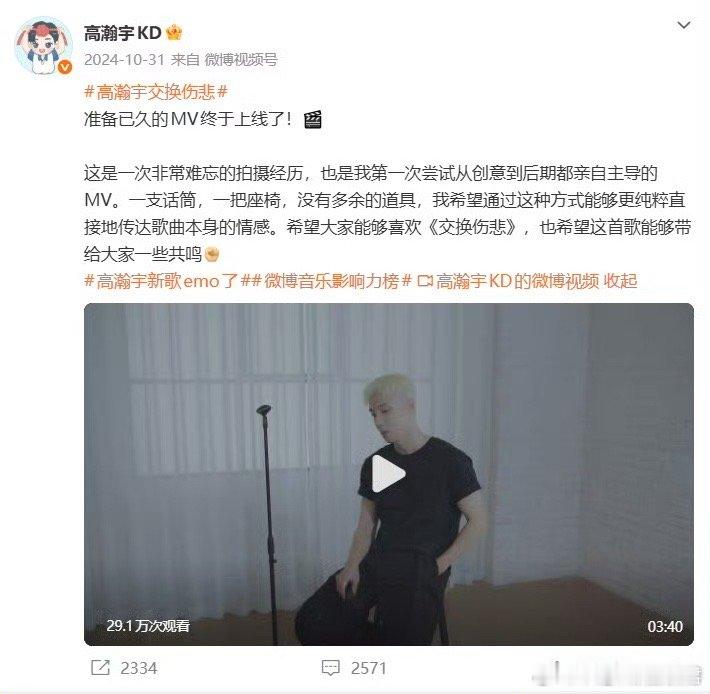 高瀚宇给新歌情绪片当PD 高瀚宇真的闷声干大事!《XIAN》监制、《交换伤悲》导演、《W星人》导演、生日单曲《Butterfly》创意策划…现在又当PD,这幕后履历比我简历还长。