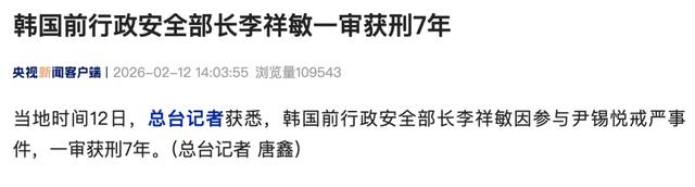 当地时间12日,总台记者获悉,韩国前行政安全部长李祥敏因参与尹锡悦戒严事件,一审获刑7年。