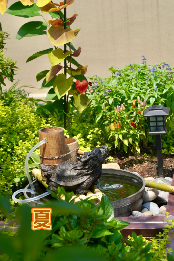 花园中央,@宋MM自己布置了一个花池,一个由太阳能水泵驱动的流水景观成为点睛之笔。“没有什么讲究,只是觉得花园里需要一点动态的元素。”这个从网络上学到的设置,如今已成为野猫的饮水之所。