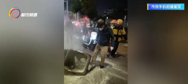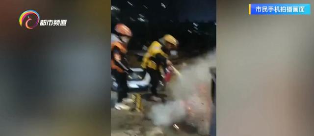黄师傅将车辆安全靠边后,提着灭火器走向起火点。此时,垃圾桶旁已经有两名外卖员和几名热心市民尝试灭火。