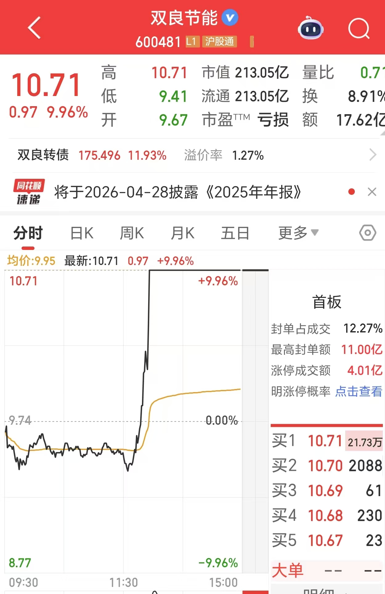 2月12日午后,双良节能(600481.SH)股价10分钟左右直线涨停。截至发稿前,其股价报10.71元/股,市值为213.05亿元。