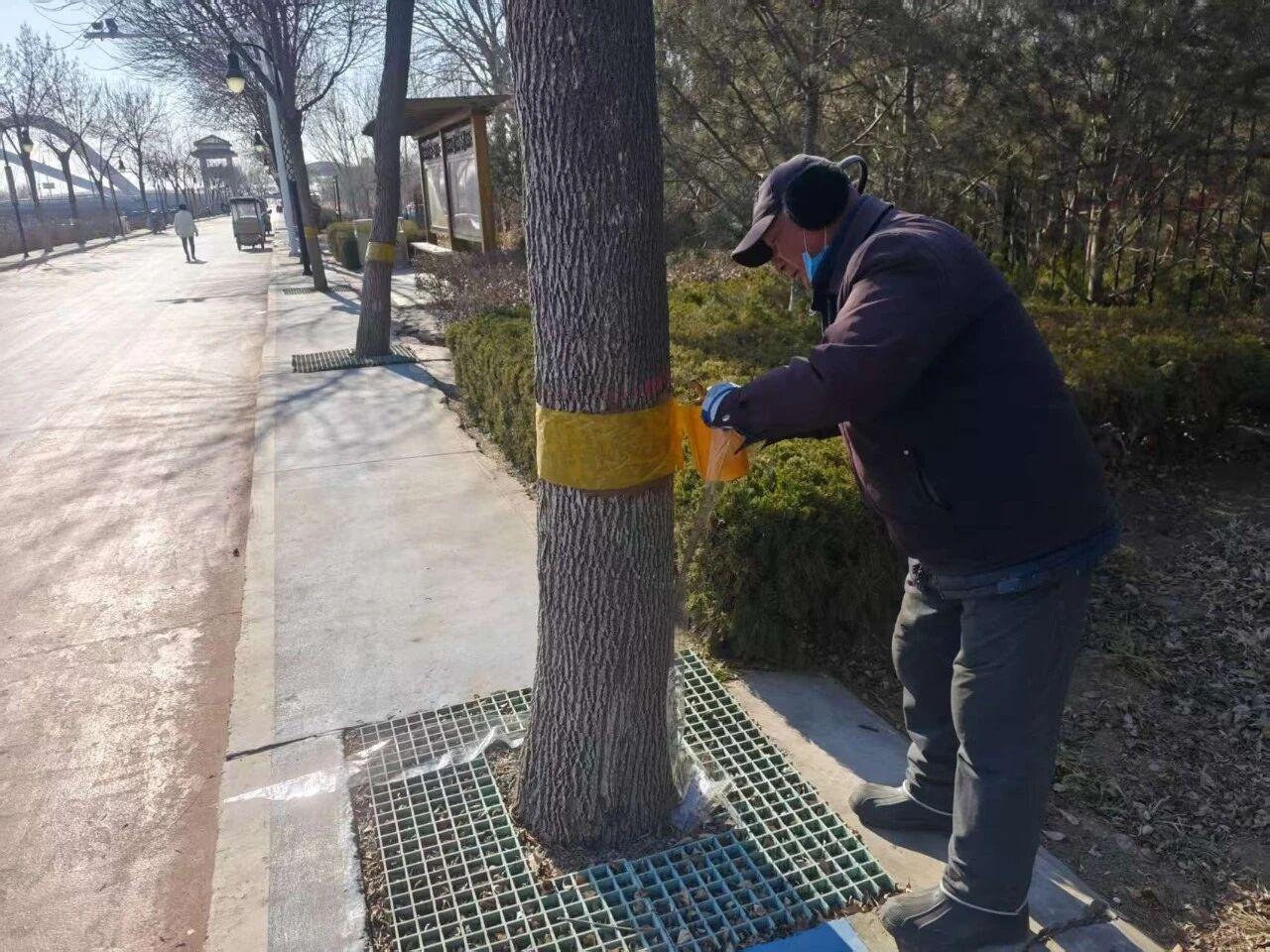 当前气温偏高,草履蚧易暴发,在进行环境卫生大扫除的同时,对所辖乔木进行胶带缠绕处理,防止病虫害暴发。市园林中心相关负责人表示,节日期间,该中心将持续园林绿化环境卫生常态化管理,让公园广场更具韵味、街道绿地更显生机,让市民在漫步赏景、阖家欢聚时,既能感受新春的喜庆氛围,也能尽享园林空间的洁净舒适。