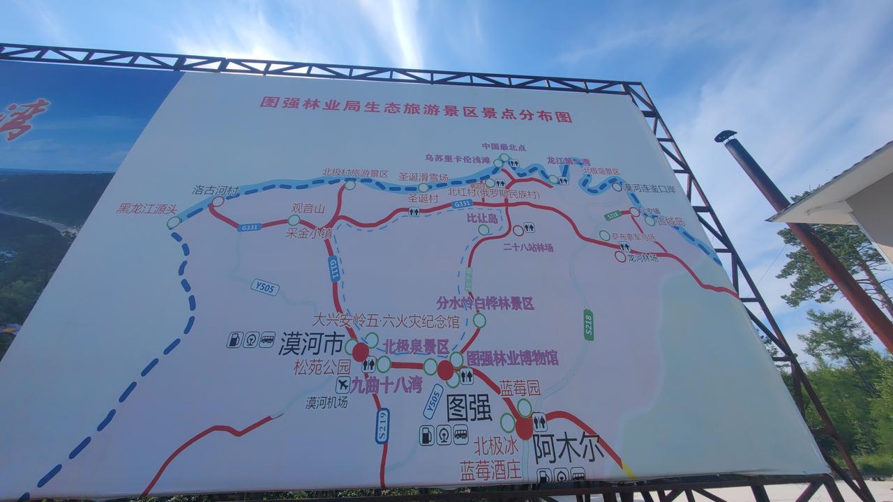 环国行摄第9天:室韦—漠河市。行驶415公里。 1.路线:室韦—临江—白鹭岛—满归镇—黑蒙界—漠河市 2.主要景点:白桦林,北极广场 3.行程:早上不到6点,儿子他们拼车出发回满洲里,回家。 他们走了之后我们收拾,把东西归归类,空间一下子大了许多。这还是我们第一次长途旅行完全是两个人的东西,空间绰绰有余。 之后我们出发,导航白鹭岛方向。其实并不像网上一些网友说的,导航不出来。直接导航满归镇,就是沿着他们说的那条路走。一路路况很好,还走了一段儿331国道,离开331国道向东到满归,全程柏油路面,只是波浪路比较多,开车要注意! 中午2点到达满归镇,略微停留了一下,继续向前,导航上180km到漠河县城。一路仍然是硬化路面,路况还不错。下午6点来钟到达漠河县城,先到北极广场,然后找到市政府停车场! 漠河北极星广场原称西山公园。位于漠河县城西端,建于2002年6月。北极星雕塑群东面花坛大理石石边台之上,可俯视一览漠河县城全貌。 漠河市政府真是良心的大大的好,竟然允许人们在政府楼后空地搭帐篷,到政府大楼里面打热水水、上厕所。这里天气还很热,我们买了一些东西,还到外边浴池洗了澡。洗澡15,搓澡10块。还能泡澡,挺舒服的! 之后觉得在政府停车场太乱,我们又到市外面找了个地方,非常安静! 4.住宿:漠河市 5.友情提示: ※路况:全程柏油路,要穿越一段无人区,注意加满油。 ※无人区柏油路波浪路段多,注意减速。 我是@环国行摄,一个深度自驾游的旅行作者,走一样的路,看不一样的景,正在驾驶自改房车环国自驾游途中,分享不一样的诗和远方,欢迎您的关注、评论和转发。