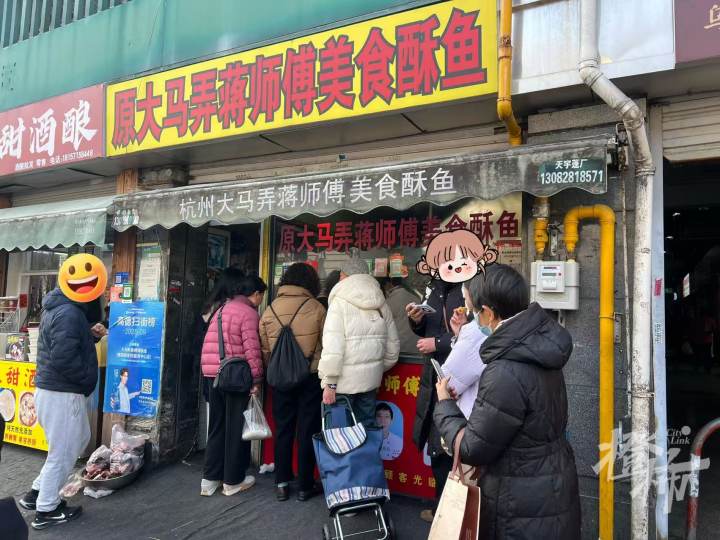 再往前走,察院前农贸市场门口的“原大马弄蒋师傅美食酥鱼”也排起了队伍,打听了一下,酥鱼只卖到腊月廿八(15日),除夕就放假了,至于节后什么时候开门还不确定。