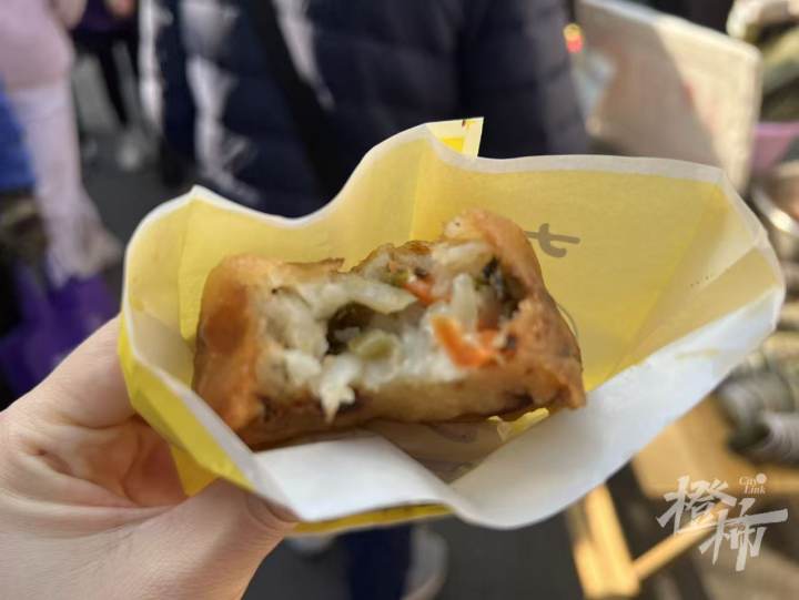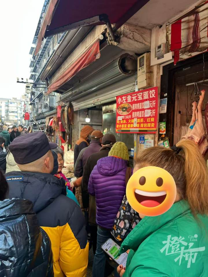 没想到排队买个蛋饺,也能治愈i人的社恐,大家虽然来自城市的四面八方,但又因为年味汇聚在此,亲切地拉着家常。