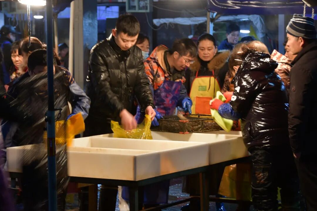 当前,天鹏食品城日均车流量已突破1万辆次,市场交易持续升温。目前,各类生鲜货源组织充足、调运高效,日均成交白条约5000头,较日常增长20%;鲜活海鲜日均供应量达230吨,品种丰富、价格稳定。两座共6万吨冷库满仓运行,为“舌尖上的年味”提供了坚实的储备支撑。