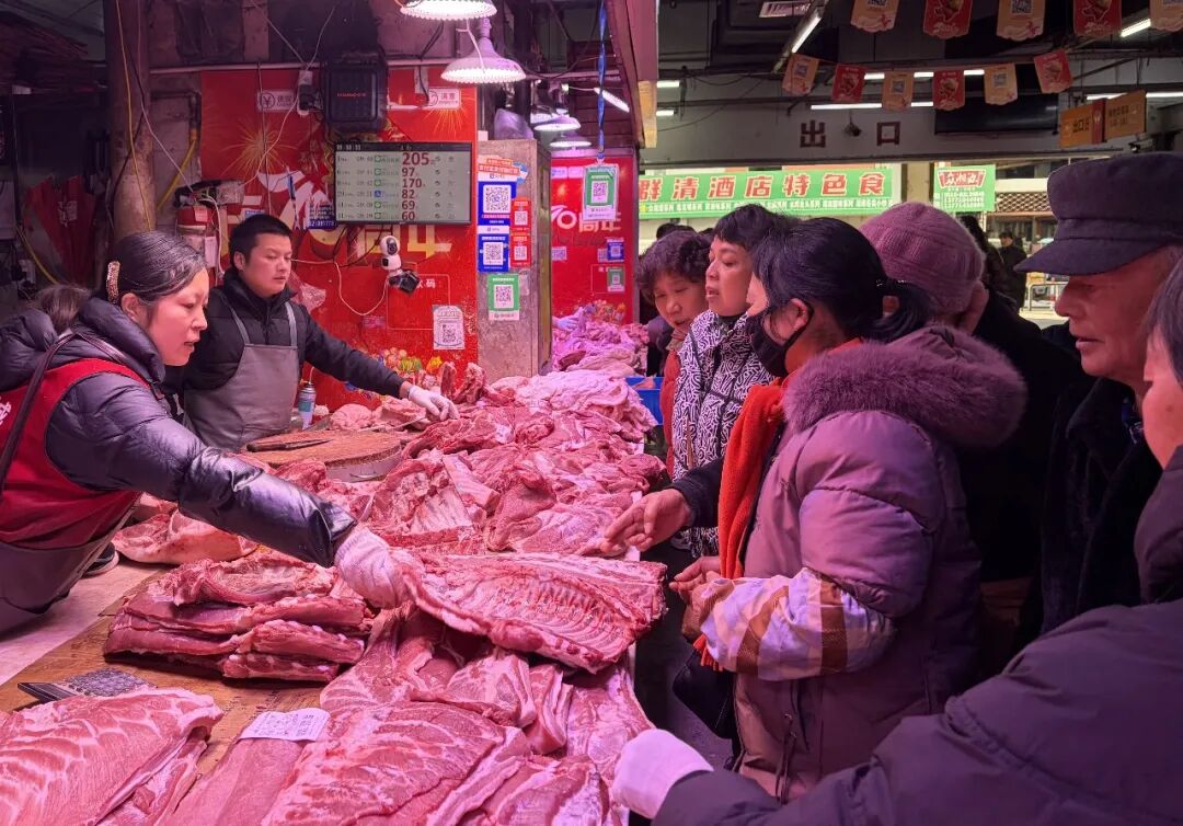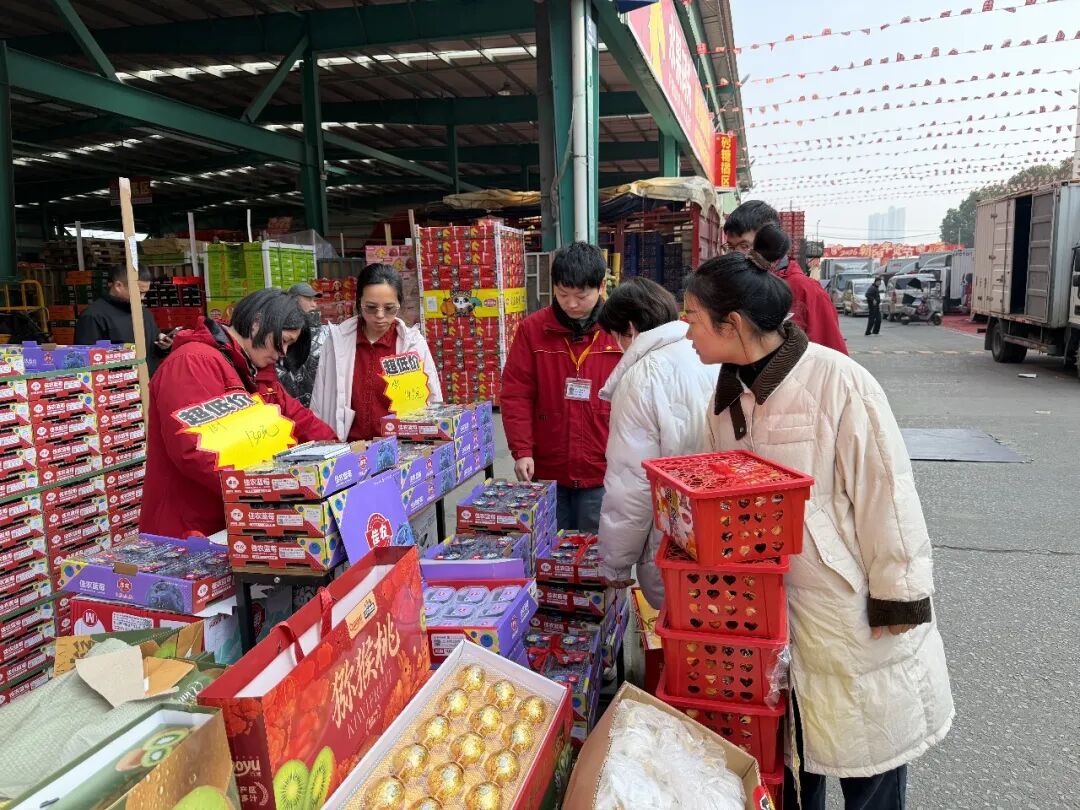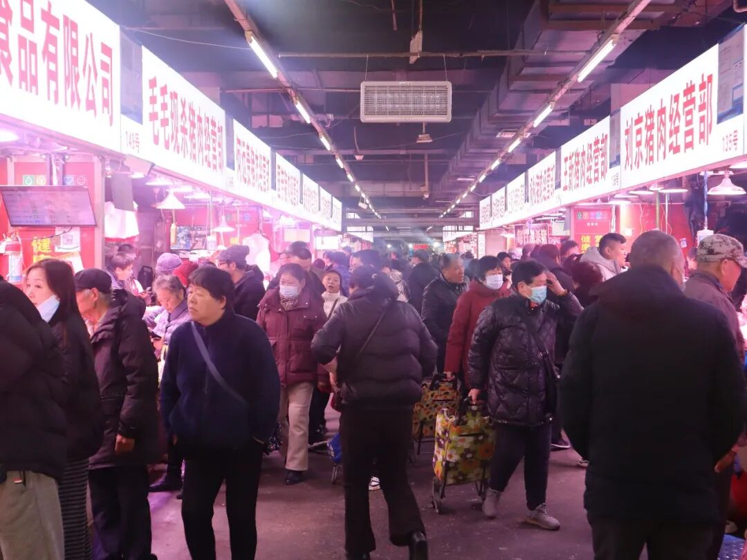 作为无锡市政府“菜篮子”工程重点实施单位与民生保供主渠道,无锡天鹏食品城车水马龙、人流如织,各地牌照的采购货车排起长龙,有序进场;交易区内,商户备货充足,市民接踵摩肩,询价声、搬运声交织升腾,呈现出一派节前供销两旺的热闹景象。