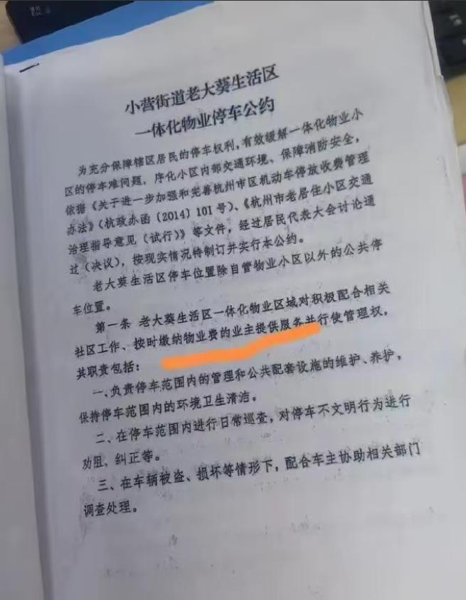 “停车我出钱就行,凭啥要我交物业费?”近日,杭州一位张姓女士在网络上多次“维权”投诉,质问物业不该将停车费与物业费“捆绑”,还称自己是因为“楼道灯坏了、垃圾长期未清理”,才愤而拒交物业费。但调查结果却显示:楼道灯一切正常,楼道与门口垃圾早有保洁按时清扫。物业明确回复她:不交物业费,就不续车位。张女士怒而投诉,还坚称“我可以选择只交停车费,物业无权拒收”,结果一纸规约让她哑口无言。 2025年12月,张女士的车位年租即将到期,她来到物业办公室要求续费。张女士所居住的小区位于杭州市西南片区,是一处建成较早的小区,没有地下车库,地面可租的车位本就稀缺,竞争激烈。张女士此前以每月80元的内部价格租用车位,一直按年缴纳,但自2024年下半年起,她便不再支付物业费。 管理人员核账发现其已欠费近一年,便根据小区《管理规约》及《停车使用公约》的规则,决定暂停对她提供车位续租。张女士对此十分不满,情绪激动,声称两项费用性质不同,不应“捆绑销售”,并指责物业失职,拒交物业费“情有可原”。 事实上,物业公司在接到其投诉后,立即安排工作人员和第三方物业稽核人员前往张女士所居住的楼栋进行逐项排查。物业提供的调度日志、门岗视频、保洁签到记录以及照明检查报告,均显示其所在楼道灯光正常亮起,楼道及门口垃圾也由固定人员每日进行清扫。从物证到人证皆证实,张女士提出的“服务不到位”理由并不成立,难以作为拒付物业费的正当依据。 当物业公司依据《停车公约》明确说明:车位为内部资源,仅向正常缴费的业主开放服务权限时,张女士却反复辩称“不知道有这样的规定”,甚至否认曾经听说过此种规约。对此,物业工作人员展示了2023年全体业主大会的会议纪要、公示照片、以及电子小区公告栏内容截图,表明相关公约早已公示至少三个月,并未违反程序,也未明显遗漏传达义务。张女士作为产权登记在册的业主,对此理应知情。 根据《民法典》第九百三十九条,物业服务合同一旦依法签订并公示,就具有对所有业主的法律约束力,即便业主本人未主动签署或者未实际参与,也不影响规则的法律效力。业主在享受公共管理和配套便利的同时,理应履行契约内的相应义务。张女士若认为物业确有服务瑕疵,应通过业主委员会、街道协调机构或司法程序提出主张,而非私下中止缴费而拒绝履责。 同时,《民法典》第二百七十八条规定,涉及共有部分、停车区域使用、服务标准等问题,属重大事项,应由业主大会共同决定,经过合理程序形成的《管理规约》《停车公约》条款,对全体业主具有普遍适用效力。物业公司据此制定停车续费优惠政策,属于合同约定下的正当行为,张女士虽出于个人意愿拒交物业费,但也因此丧失部分业主服务权益。 一些网友指出,张女士争执的80元车位月租,其实是物业给予按时缴纳物业费业主的一种“福利价”,属小区内部优惠,并不具有强制普适性。若其选择不履约、不交费,物业也有权按合同终止服务关系。理论上她仍可临时停车,但需按社会公共停车收费标准执行,以张女士小区附近停车场计费为例,每小时两元,每日封顶20元,长期停放成本远高于原先优惠价。这一点,物业早已解释清楚。 这类业主争议虽以“车位”为导火索,但本质是公共契约精神的博弈。个别业主以自认为“服务不到位”为由拒缴物业费,往往忽略了解决问题的正常法定途径。一旦更多人效仿,不仅破坏小区公共财务运转和环境维护,也掏空了契约制管理的根基。 值得注意的是,张女士的例子并非个案。近几年,部分小区正强化业主大会决策权,通过规约形式规范车位使用、水电管理、快递投递等具体服务,推动居民社区从物业主导向共建共治模式过渡。在这一转型中,“情绪抵抗”型业主往往陷入“我感受不好,所以我不该付费”的思维误区,但事实证明,单方面断缴无法触发责任豁免,反而可能形成违约后果。 此外,根据《民法典》第五百七十七条,合同一方未履行义务,另一方可依法主张权利,但不能以“对方没做好”为由单方面暂停履行,无论是供暖、保洁还是停车服务,均属于物业合同履行内容,必须通过合法主张程序处理。擅自否认支付义务,法律后果将自行承担。 停车权利从来都不是孤立存在。张女士站在服务窗口前的争议,也许只是几分钟对峙,但对其他依法缴费业主而言,每一个为公共服务埋单的月度账单背后,更希望看到规则的一致与落地。如果业主只挑选自己“喜欢”的费用缴纳,公共秩序终将无以为继。规则,不能变成“自选菜单”。