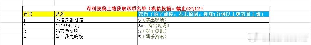 成都娱乐帮𝟐𝟔年/𝟎𝟏月帮币获奖名单(拟)本期来源:投稿上墙、互动榜统计时间:02月12日随机兑换、月度兑换:从每年四月开始年度兑换:每年12月娱乐帮粉丝嘉年华兑换