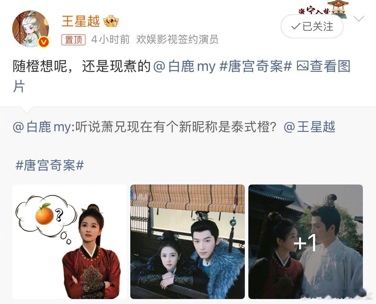 王星越剧宣也是5G网 哈哈哈哈哈哈哈,王星越一直都在冲浪最前线啊,这不剧宣也是5G网,拿了十个橙子,也是角色的谐音梗,和白鹿互动时调侃还有现煮泰式橙,哈哈哈哈,算是把谐音梗玩明白了,真的是从唐宫奇案戏里笑到了戏外啊,哈哈哈哈哈哈哈,这头脑也是可以了王星越~