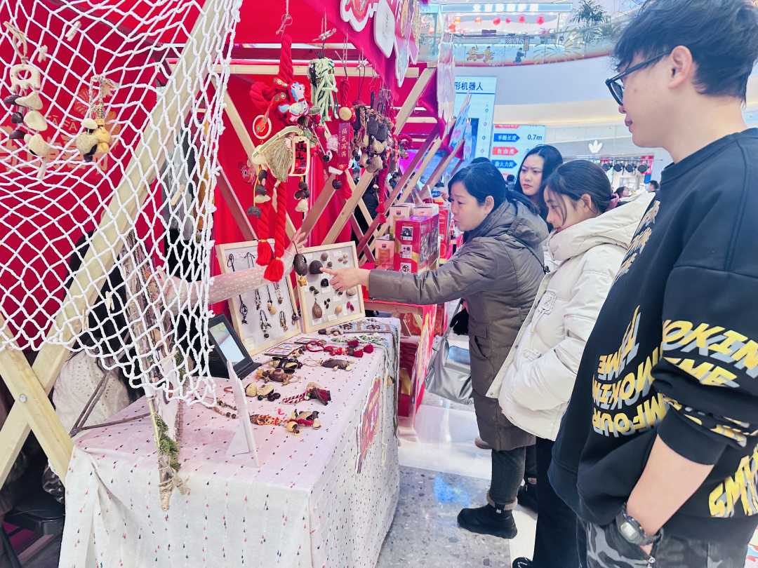 市民正在青山年货节现场选购文创产品。白兆刚摄