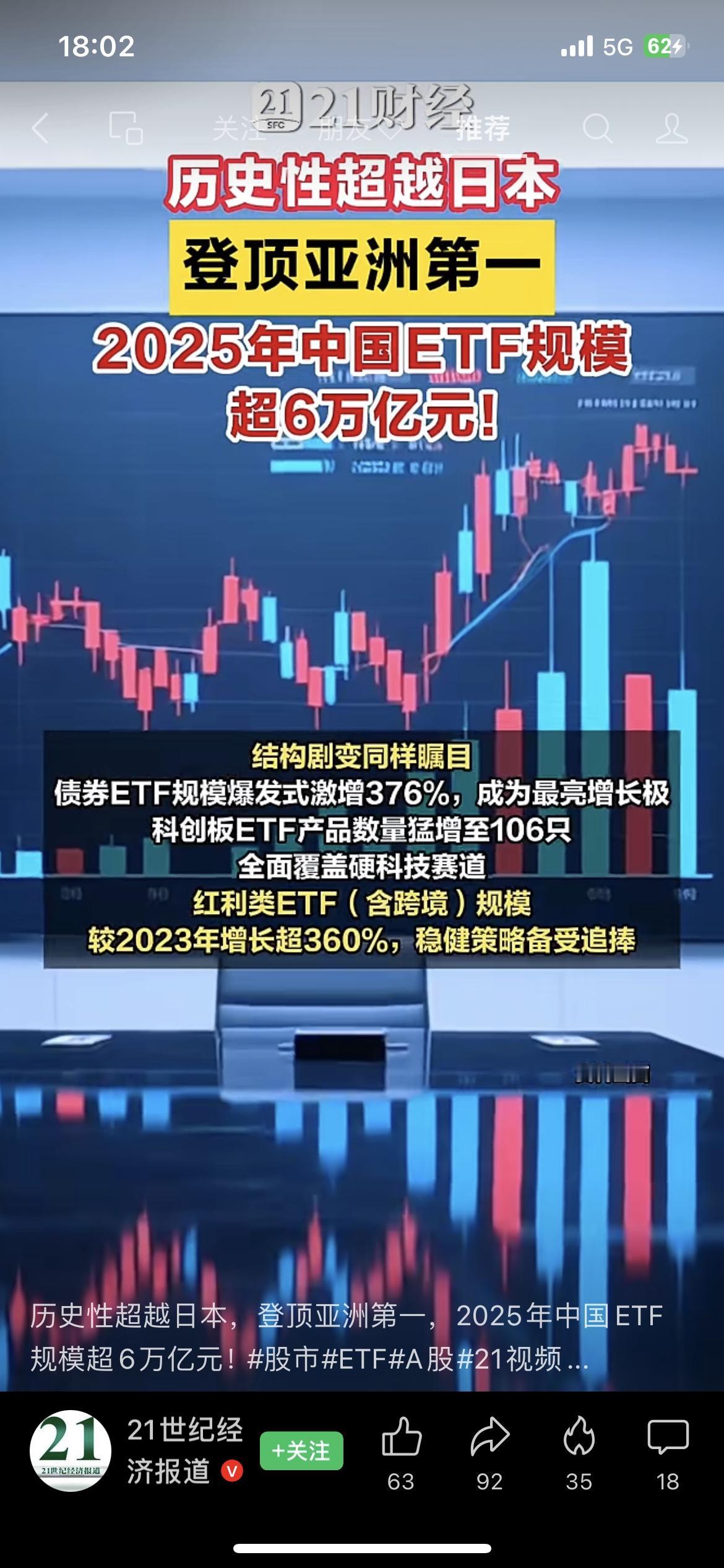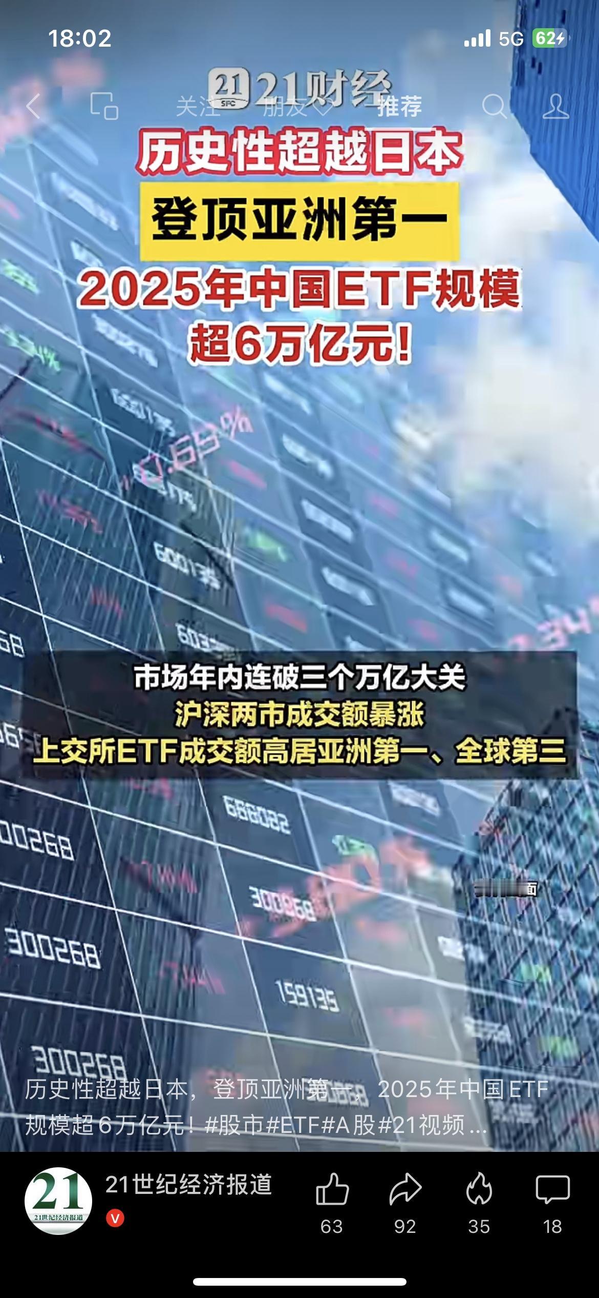 说实话,这两天理财圈炸了!2025年中国ETF规模突破6万亿,直接超越日本登顶亚洲第一。 沪市机构持有占比65%,债券ETF暴涨376%,红利ETF更是疯长。 这信号太明显了:市场正在从炒个股,转向稳配置。 普通人别再瞎追涨杀跌了,跟着机构方向走,才是今年最稳的理财思路。 你今年基金是赚是亏?评论区聊聊~ ETF规模登顶 普通人理财