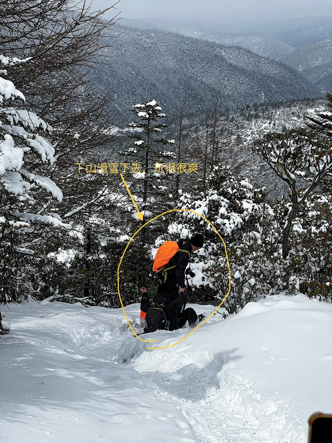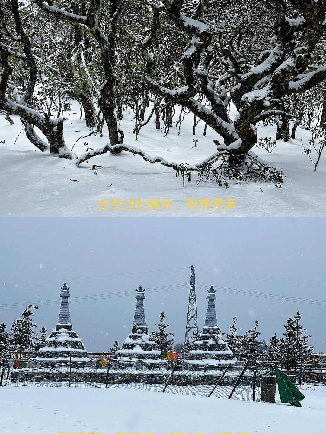 2⃣️如果体力好,能适应高原,可以去停车场对面的杜鹃林玩,越往里雪雪厚,甚至有半米、1米厚,积雪厚到让人无法前进。
