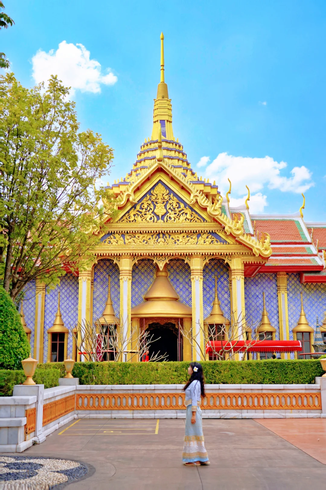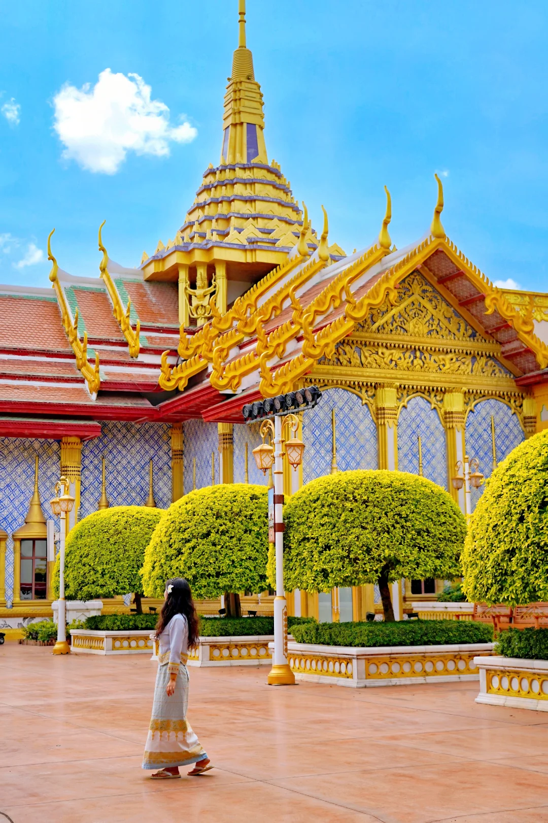 白墙金瓦在阳光下泰味十足