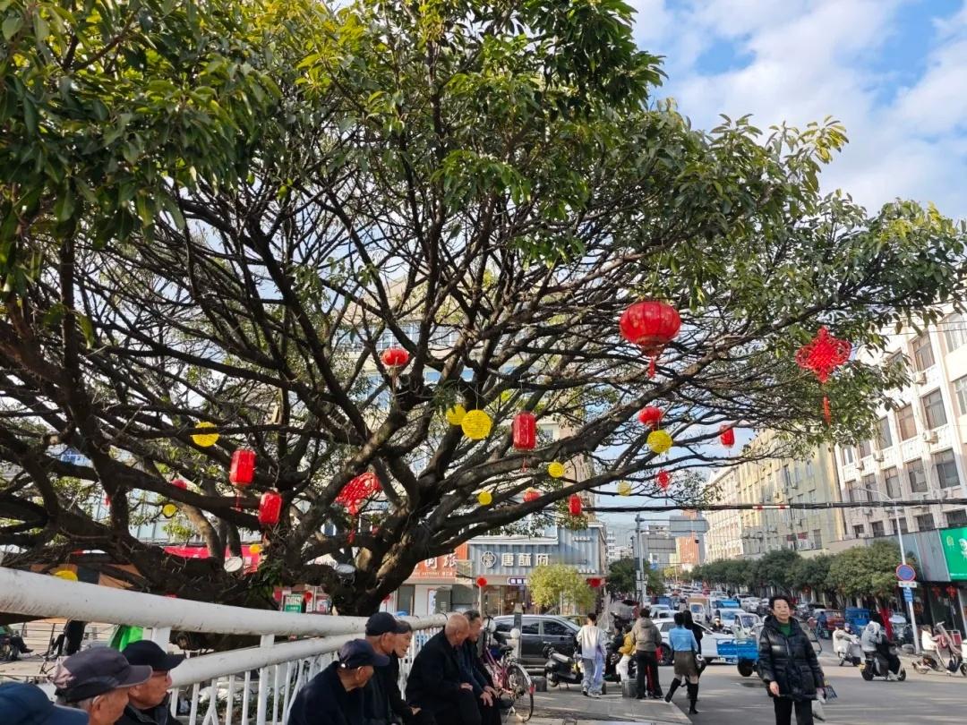 穿过挂满灯笼的街角,看阳光透过枝叶洒在“人民大道”的路牌上——那些熟悉的风景,正被节日的喜悦悄悄点亮。