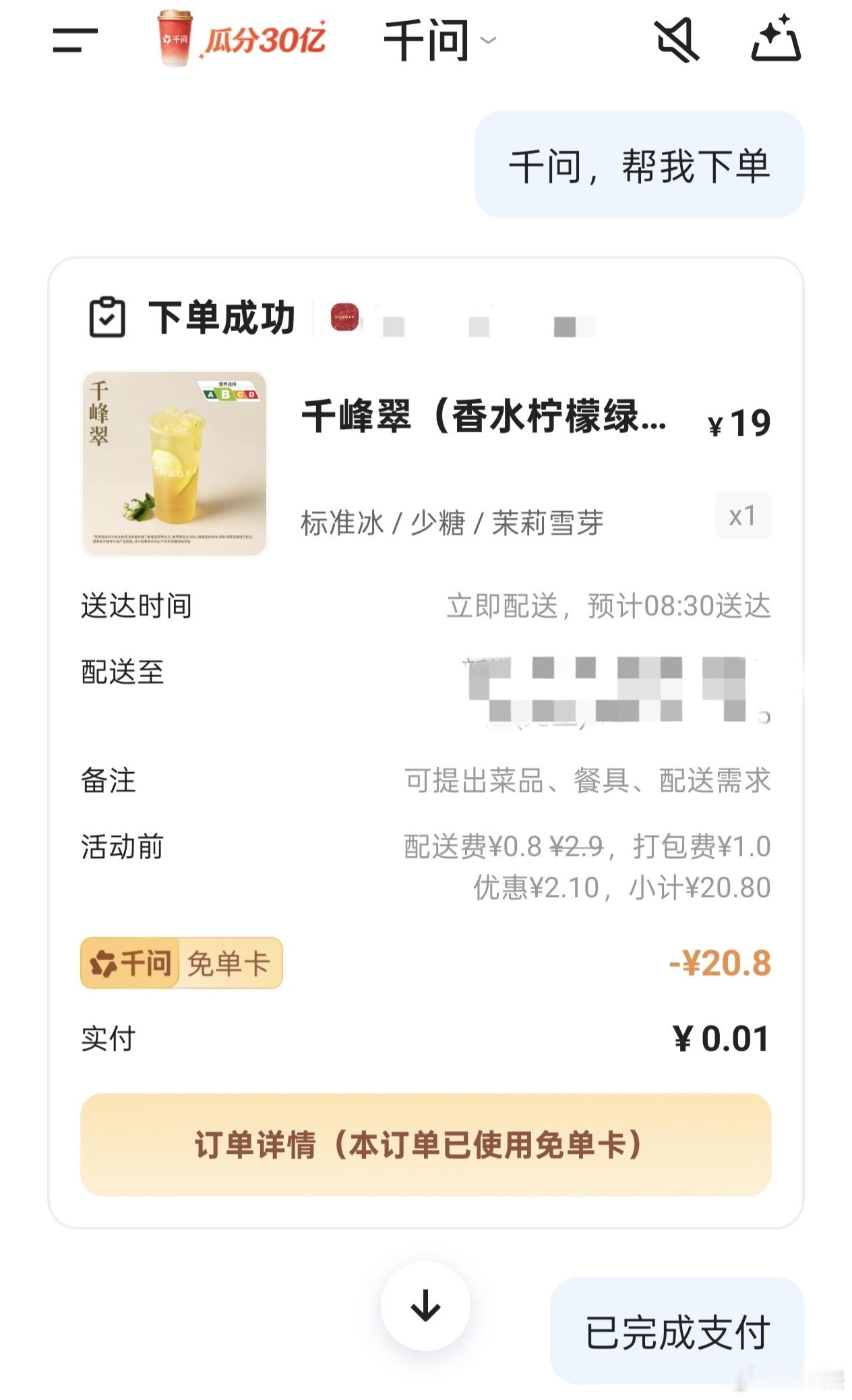 看了千问第一波活动的战绩,是真的火爆,6天完成1.2亿笔订单,全网喊了41亿次“千问帮我”,上线9小时直接破1000万单,火爆到我只能晚上错峰去买,白天基本都被挤爆。虽然活动暂时落幕,不过就凭这热度,下一波福利肯定更顶,已经狠狠期待住了
